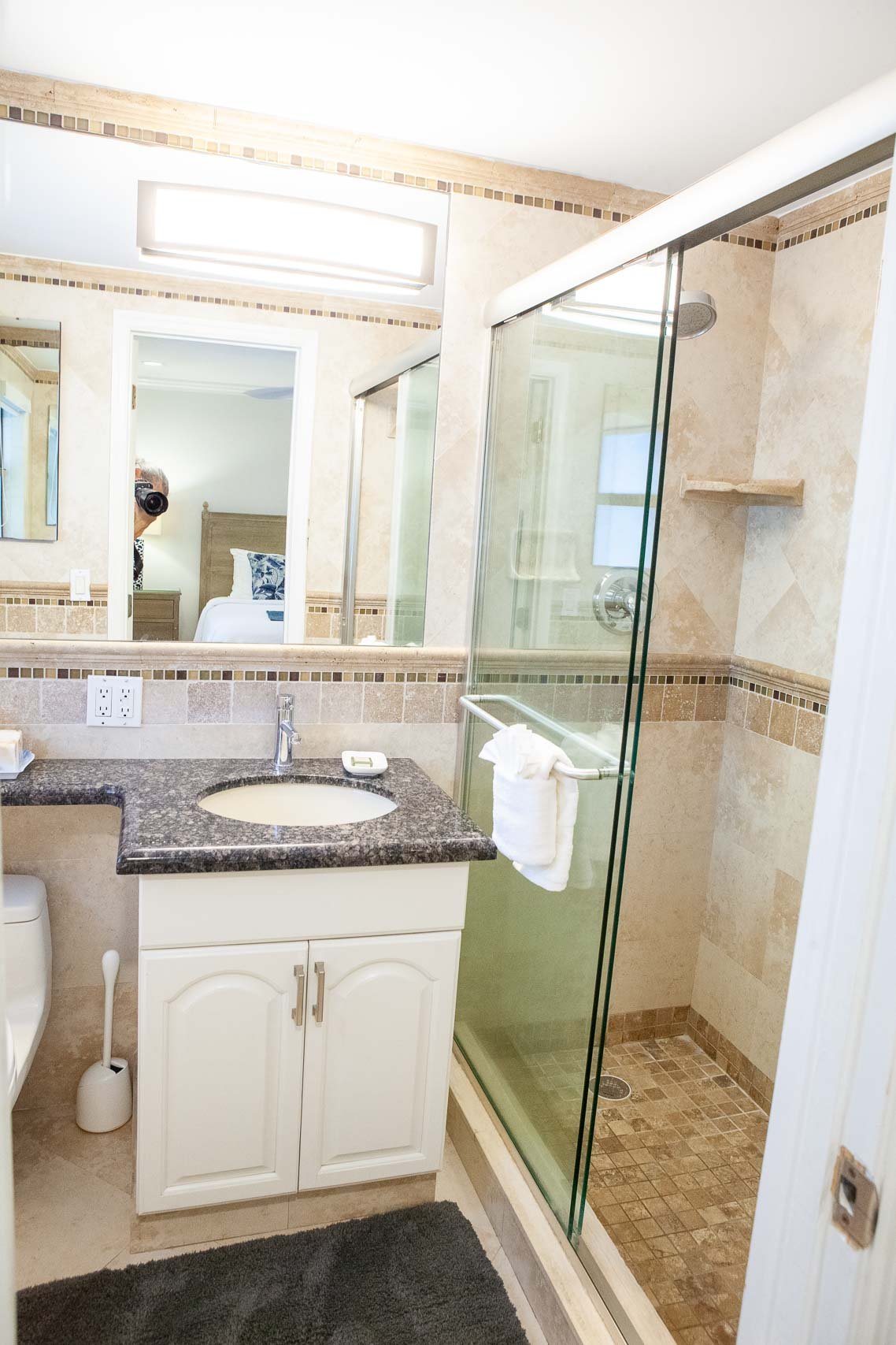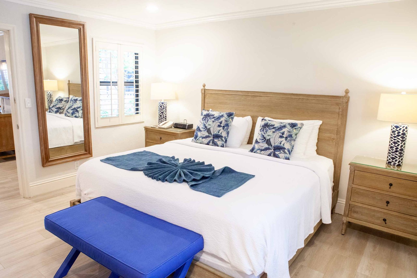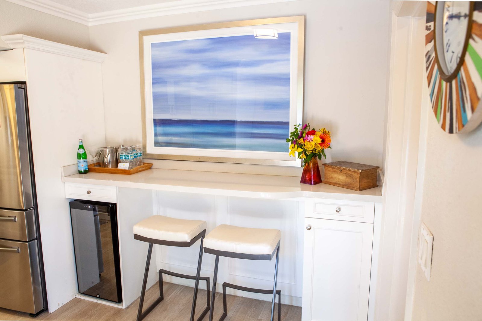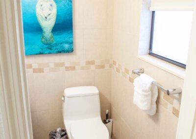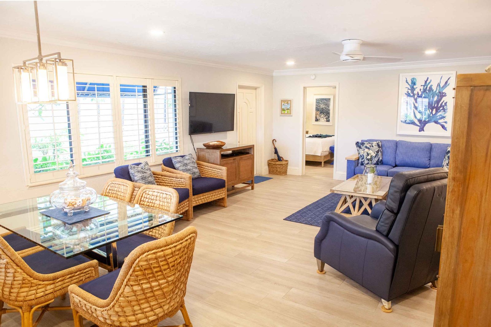 Our newly renovated Beach House is as private as it gets. Enjoy two spacious bedrooms, each with a king bed and private fully appointed baths, one with its own Jacuzzi tub and shower. There is a large living room with a queen sleeper sofa and a half bath. A fully equipped kitchen and a separate dining area offers a beautiful view of the beach side garden and the Atlantic ocean. A set of French doors lead out to the grand terrace patio with a large tiki hut and barbeque area with views of the coastline and the famous Lauderdale-by-the-Sea pier, looking north to the Hillsboro Lighthouse.