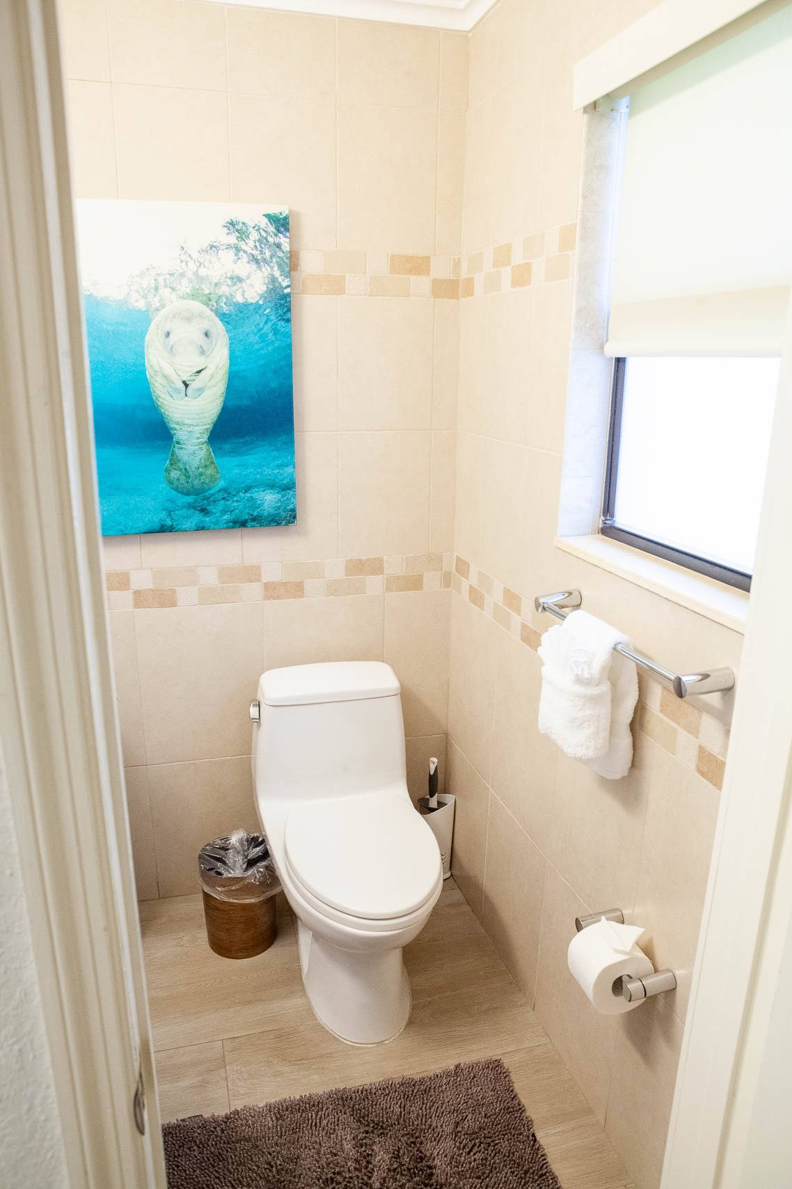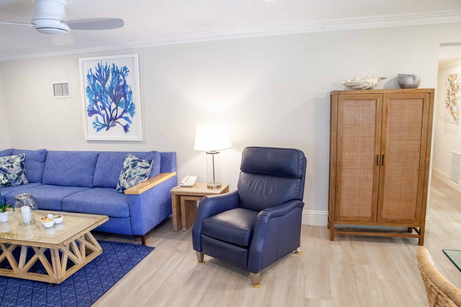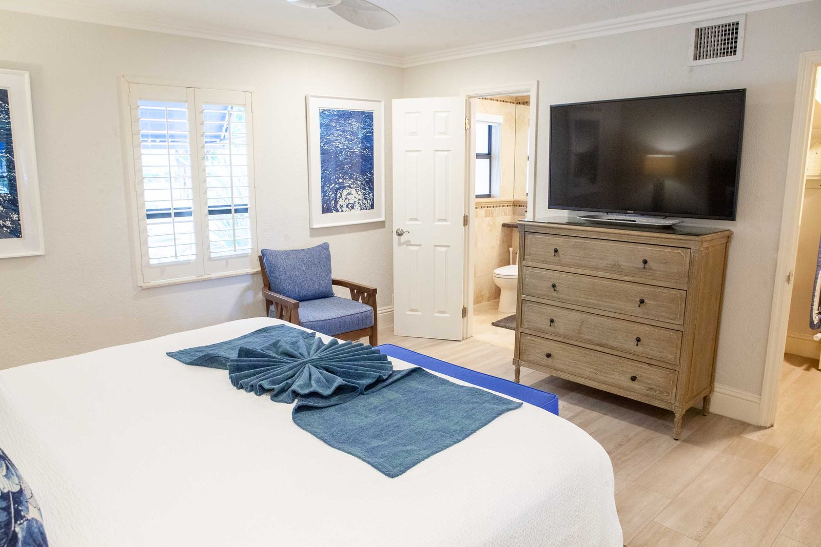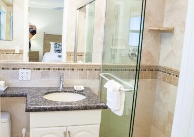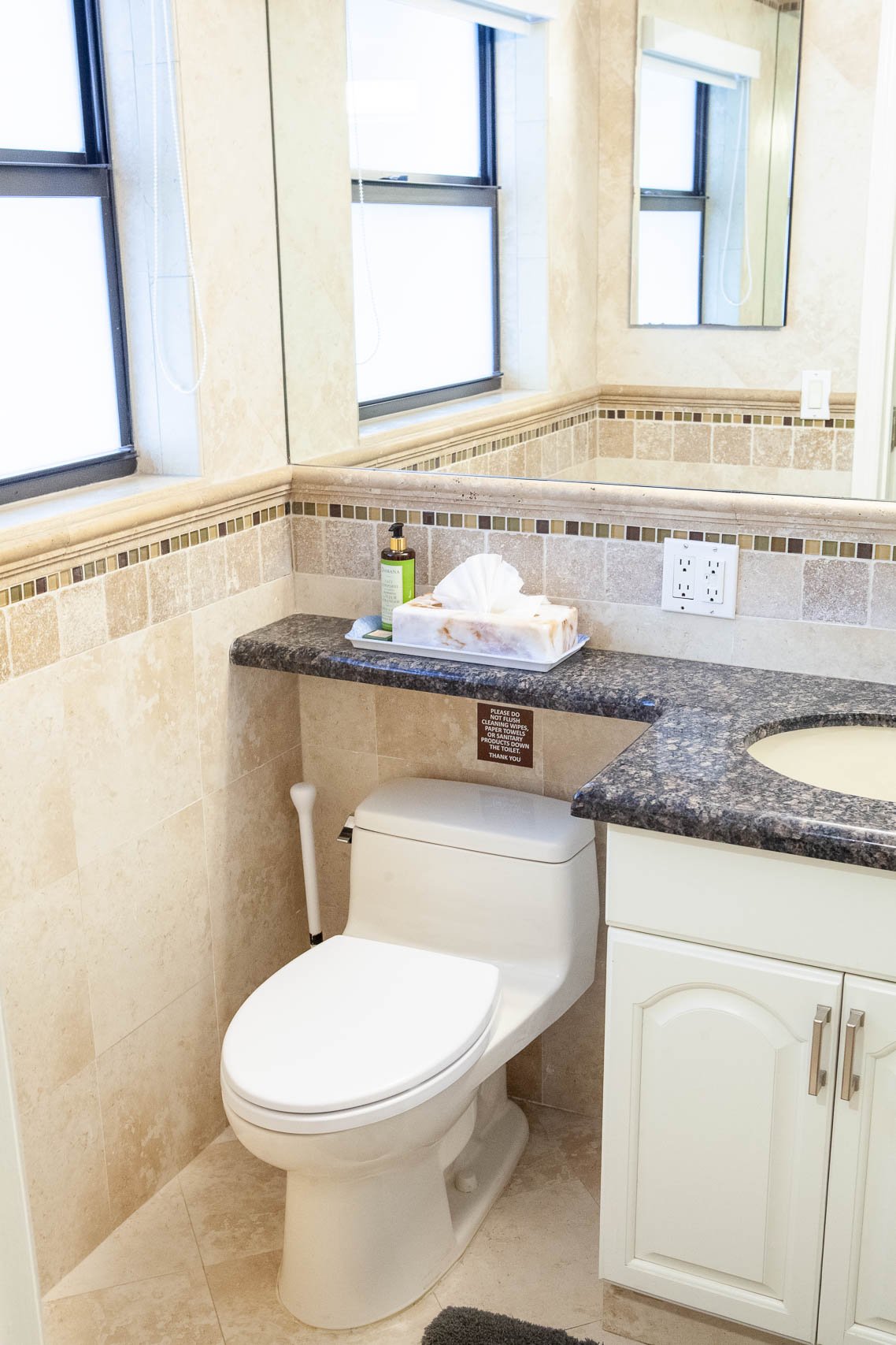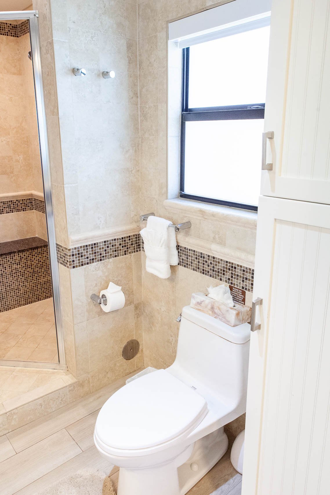 Our newly renovated Beach House is as private as it gets. Enjoy two spacious bedrooms, each with a king bed and private fully appointed baths, one with its own Jacuzzi tub and shower. There is a large living room with a queen sleeper sofa and a half bath. A fully equipped kitchen and a separate dining area offers a beautiful view of the beach side garden and the Atlantic ocean. A set of French doors lead out to the grand terrace patio with a large tiki hut and barbeque area with views of the coastline and the famous Lauderdale-by-the-Sea pier, looking north to the Hillsboro Lighthouse.