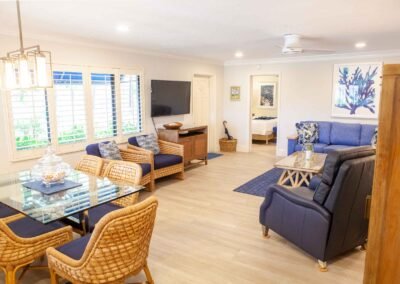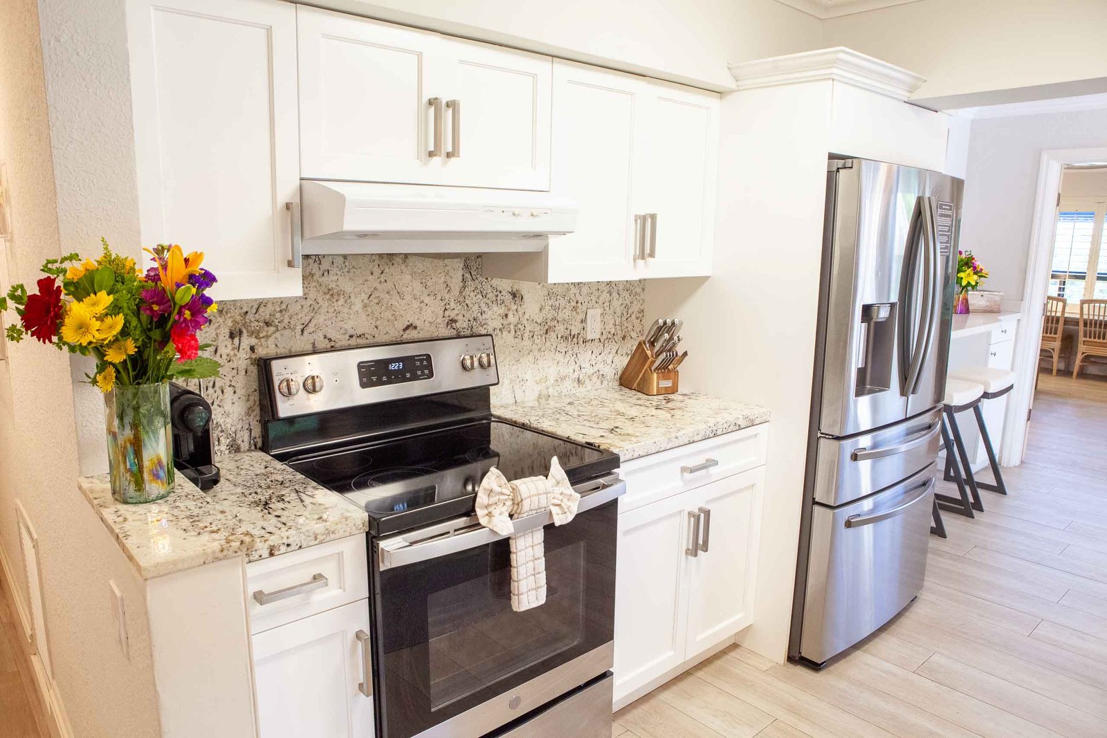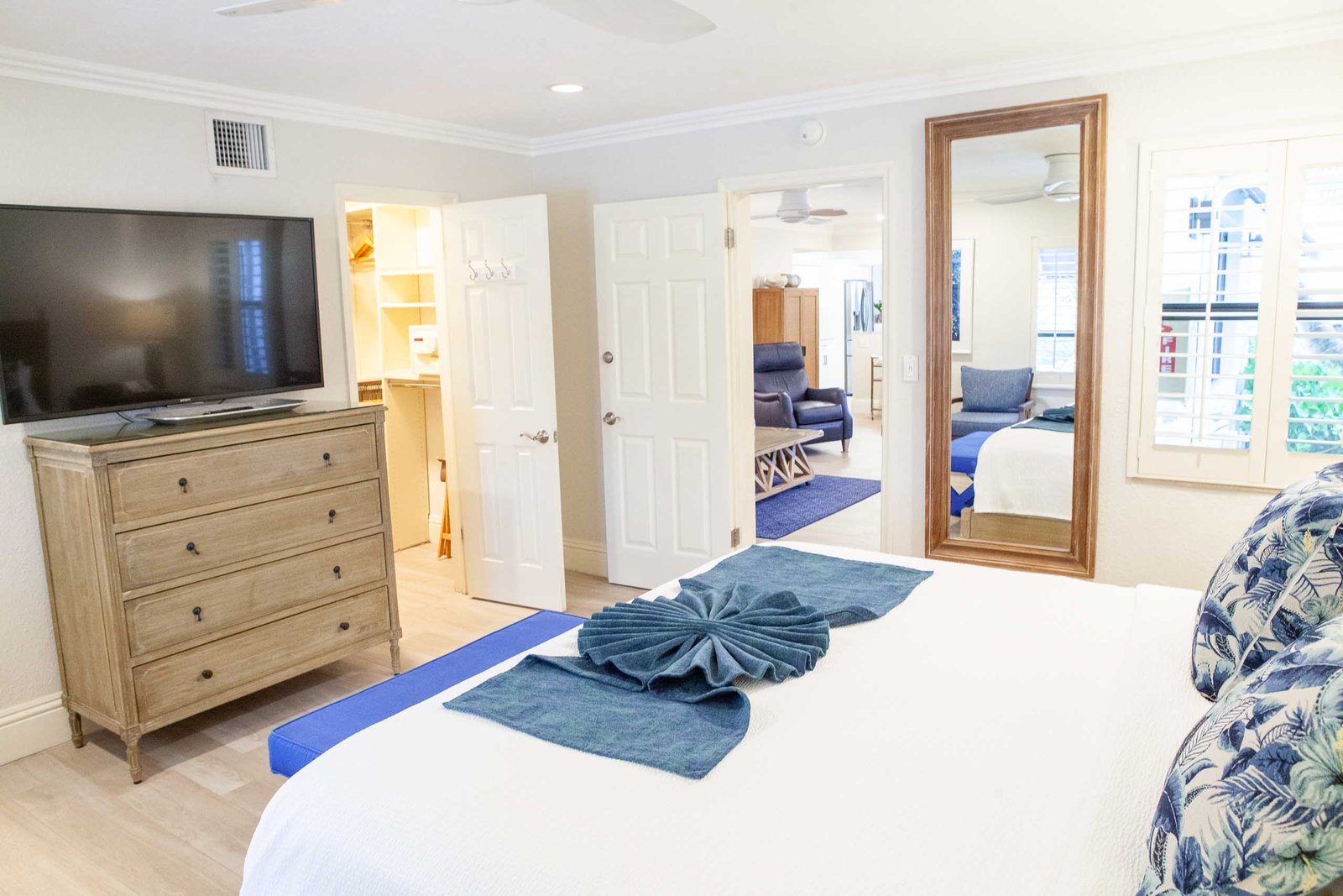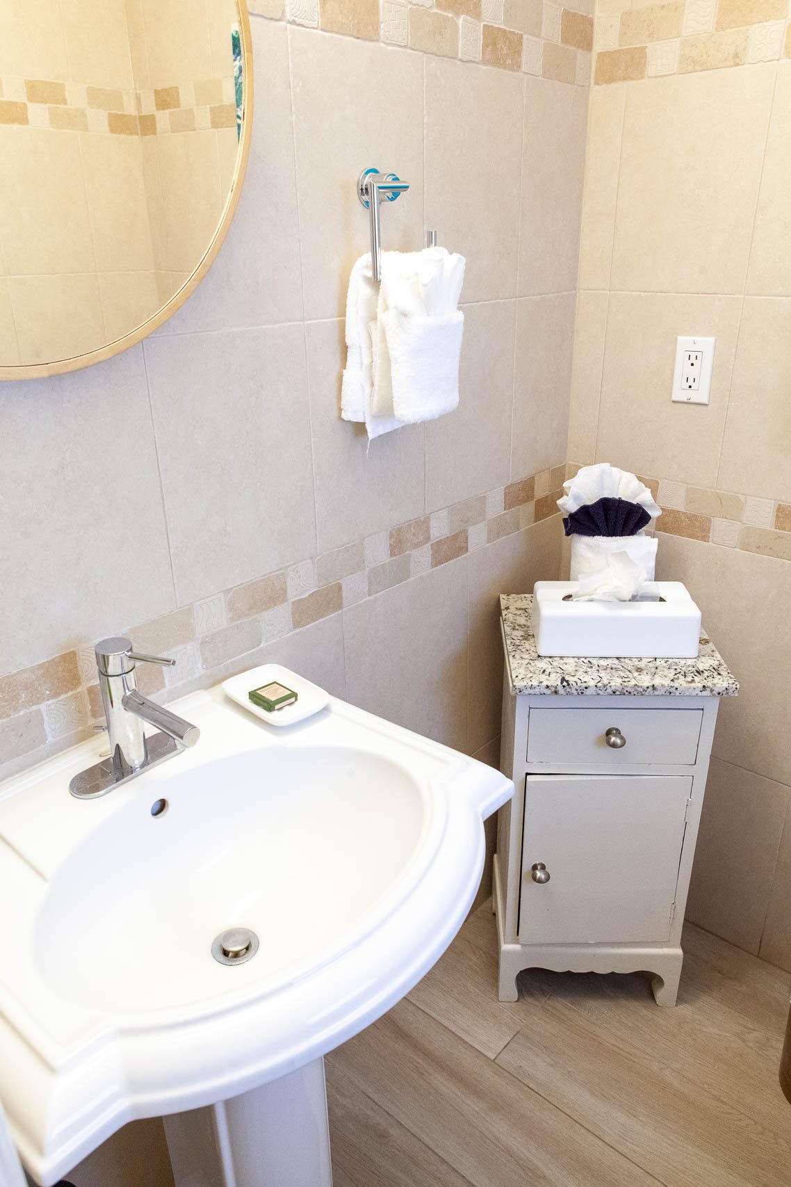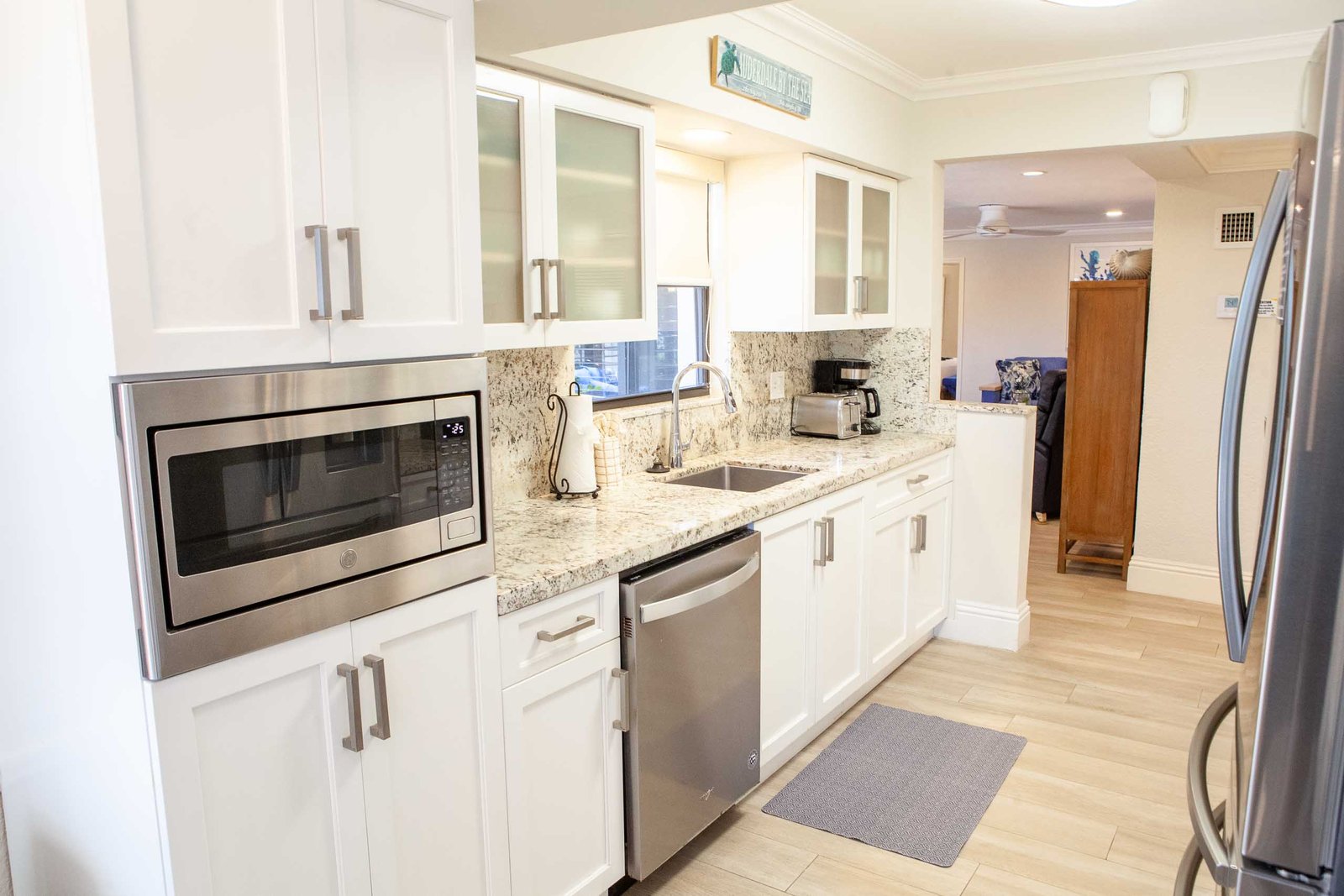 Our newly renovated Beach House is as private as it gets. Enjoy two spacious bedrooms, each with a king bed and private fully appointed baths, one with its own Jacuzzi tub and shower. There is a large living room with a queen sleeper sofa and a half bath. A fully equipped kitchen and a separate dining area offers a beautiful view of the beach side garden and the Atlantic ocean. A set of French doors lead out to the grand terrace patio with a large tiki hut and barbeque area with views of the coastline and the famous Lauderdale-by-the-Sea pier, looking north to the Hillsboro Lighthouse.