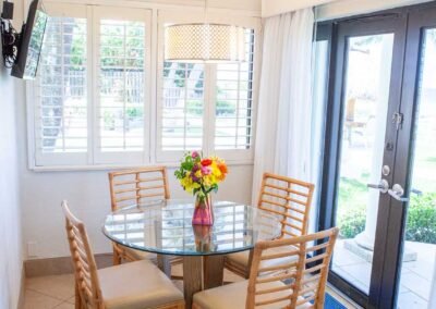 Some of our efficiency apartments interconnect to hotel rooms to form a Suite. Also most of the second floor units in The High Noon have private balconies with a table and chairs, which makes a great place to sunbathe, and enjoy the views of the beach, ocean and pier.