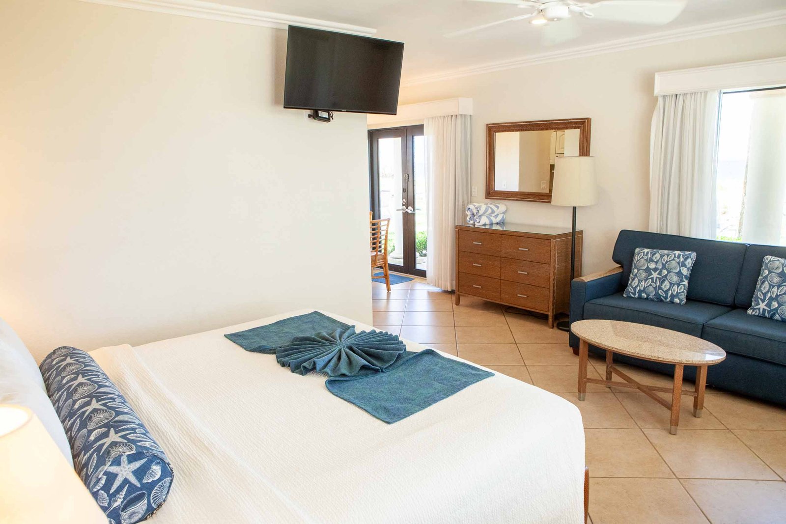 Our Efficiency Apartments have all the comforts of home with either a king bed and a queen sleeper sofa, or a king bed with a twin sleeper sofa. Each apartment has a full size kitchen and separate dining area, and a full bathroom with a tub or shower.