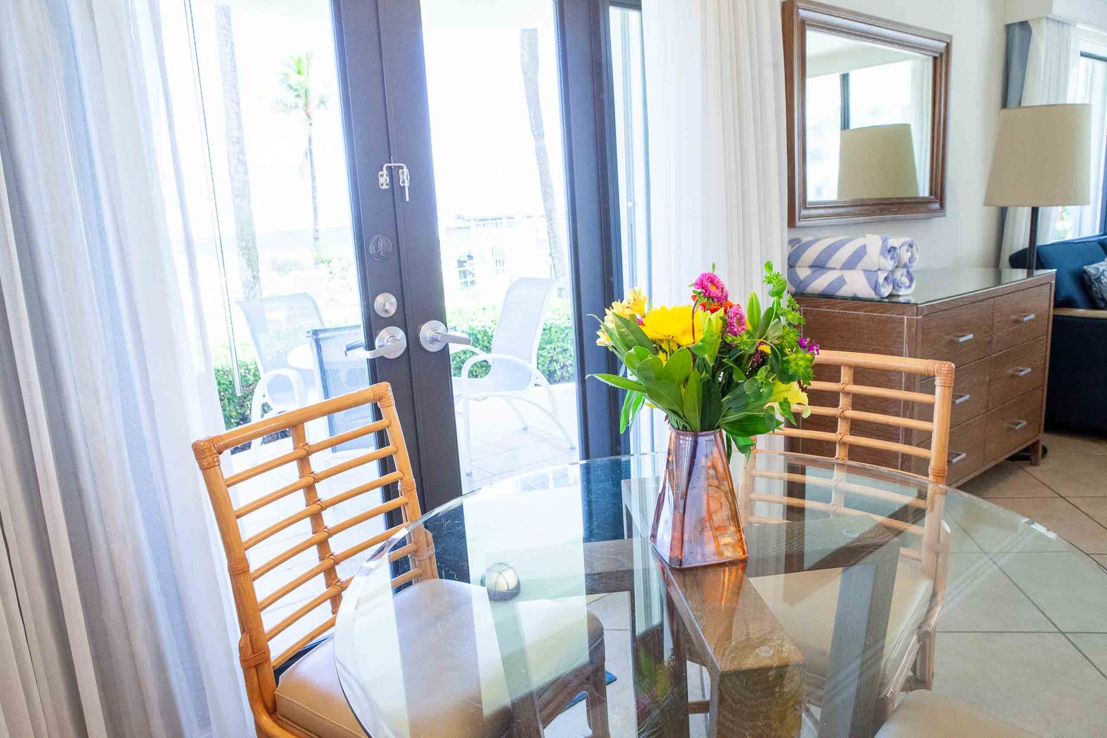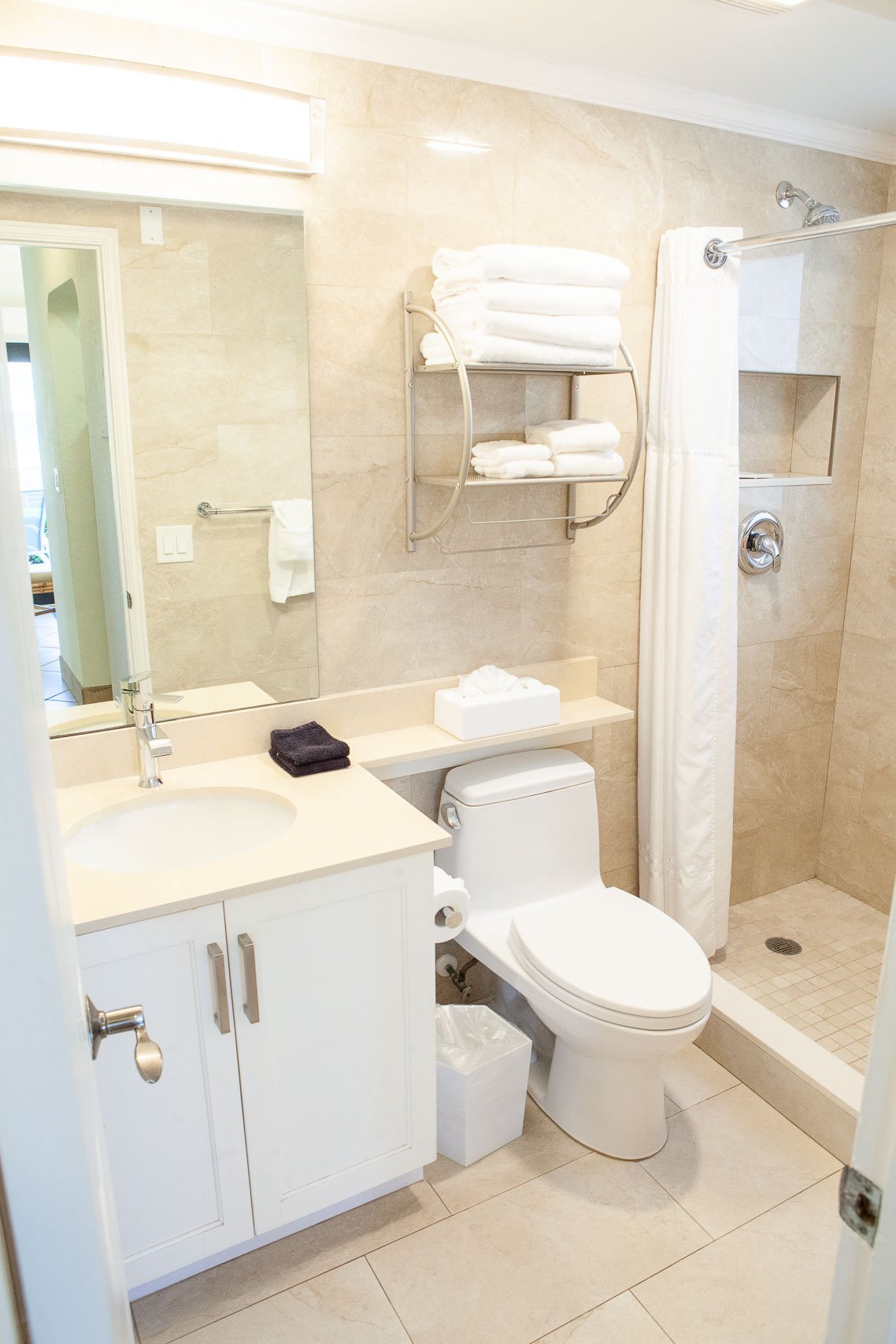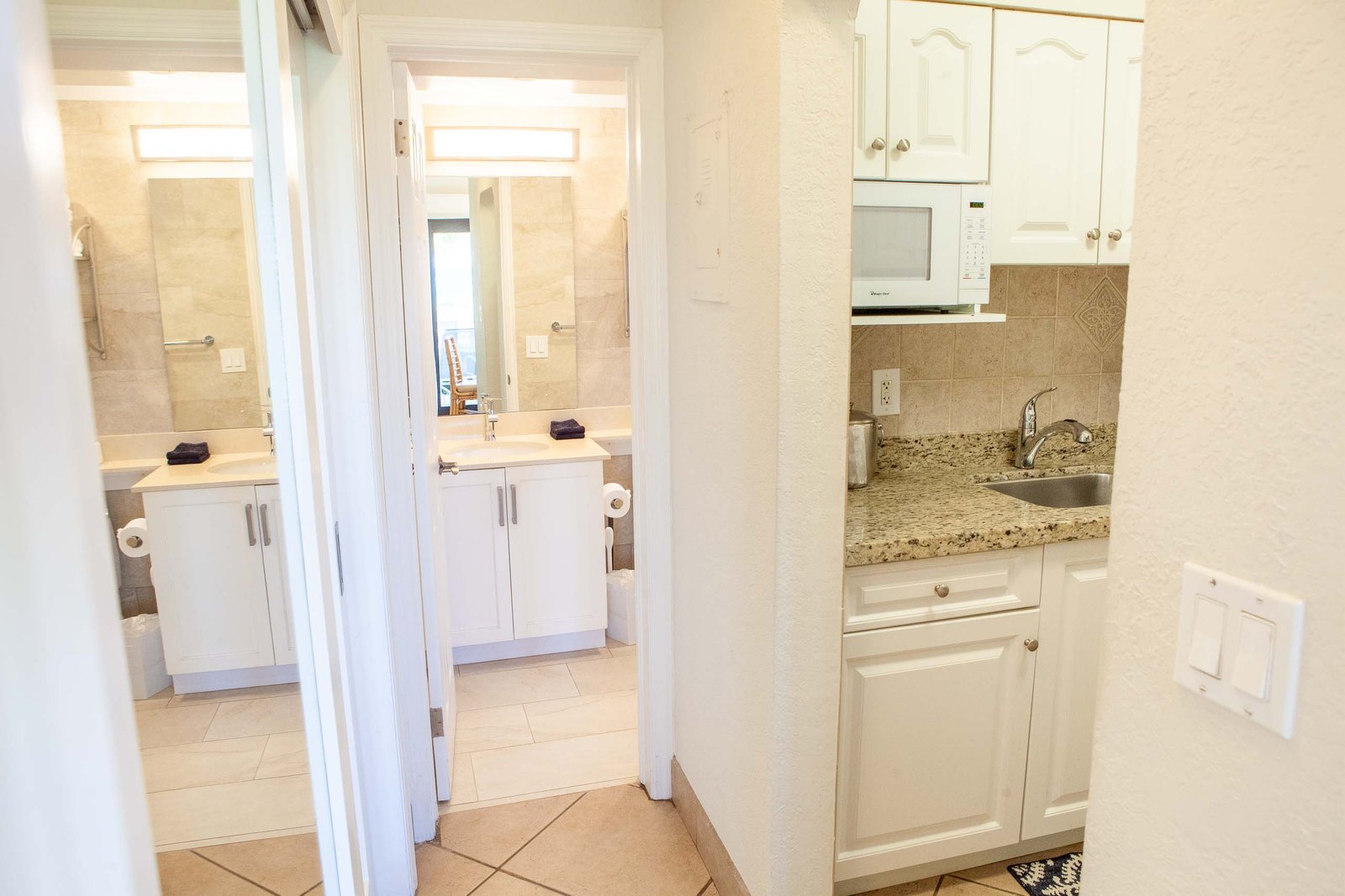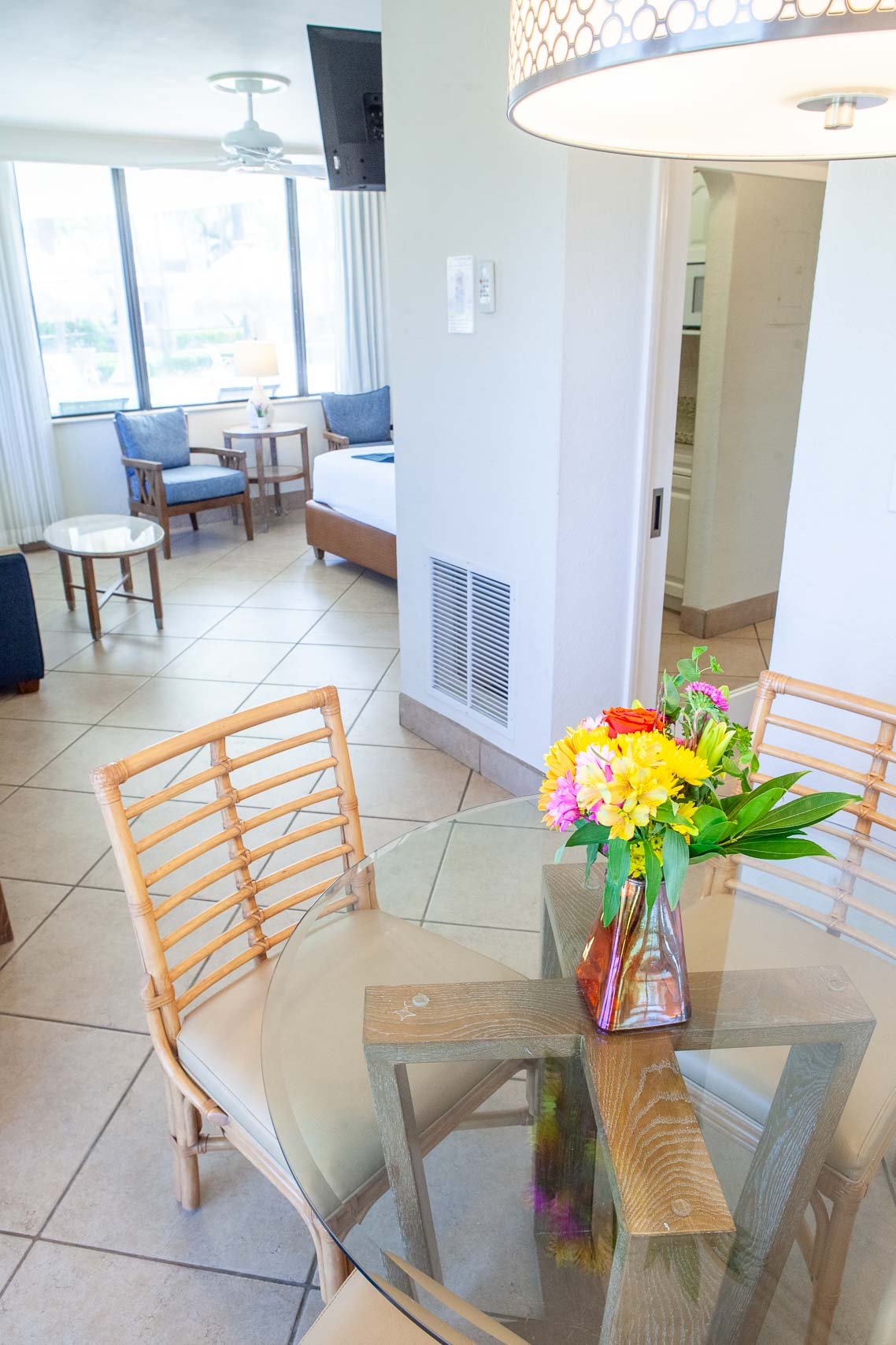 Some of our efficiency apartments interconnect to hotel rooms to form a Suite. Also most of the second floor units in The High Noon have private balconies with a table and chairs, which makes a great place to sunbathe, and enjoy the views of the beach, ocean and pier.